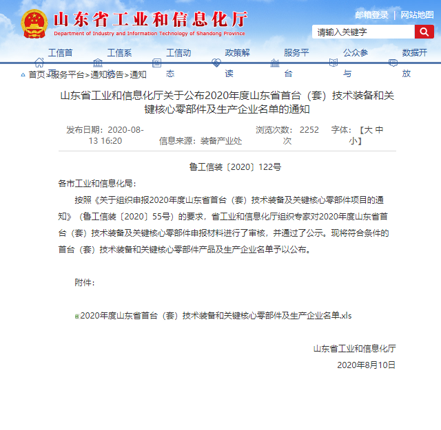 2020年度山東省首臺(套)2020年技術(shù)裝備和關(guān)鍵核心零部件及生產(chǎn)企業(yè)名單