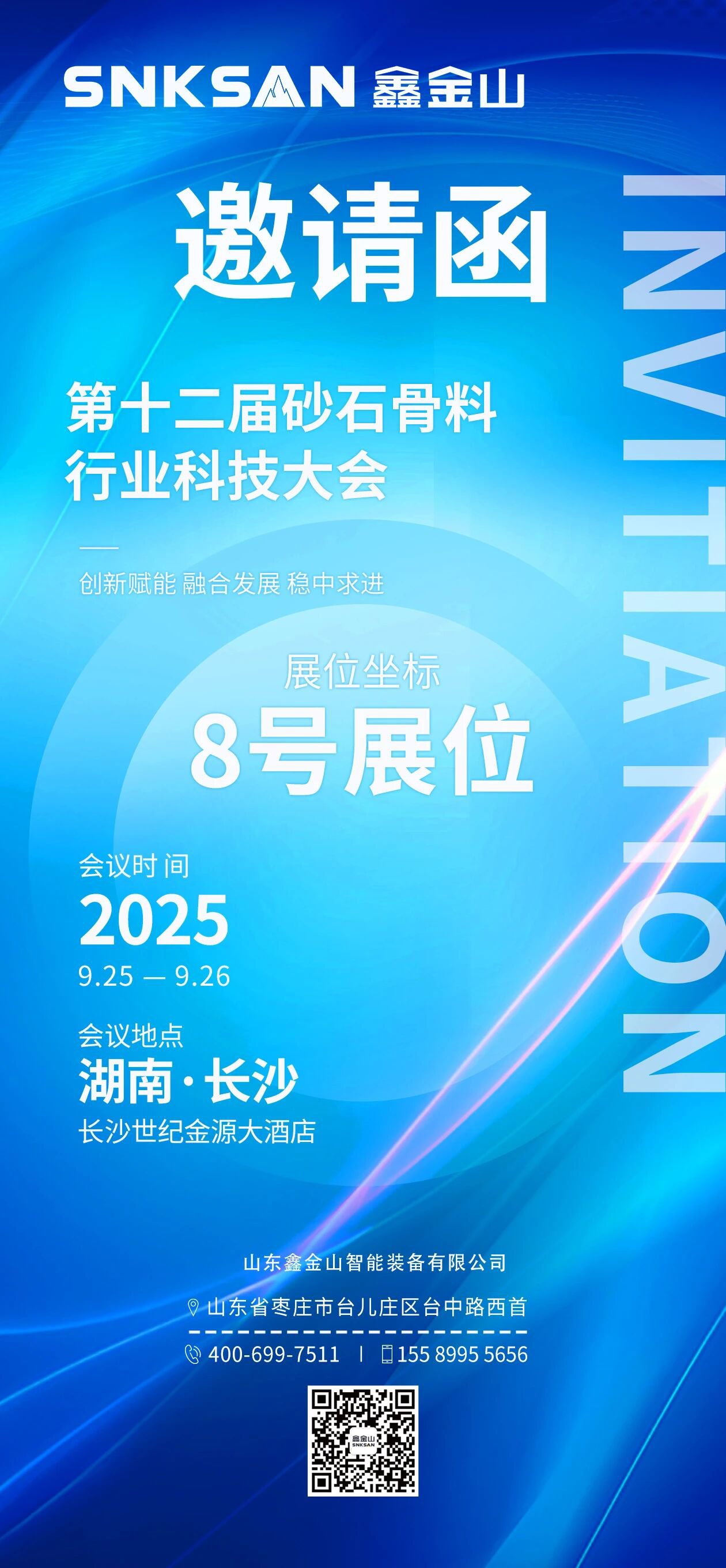 當前,砂石行業正面臨市場需求收縮、競爭加劇、利潤下滑等多重挑戰。如何突破“內卷”、實現高質量發展,成為每一位行業同仁關注的焦點。在此背景下,中國砂石協會將于2025年9月24日—26日在長沙世紀金源大酒店舉辦第十二屆砂石骨料行業科技大會。鑫金山作為行業智能制造與綠色礦山的推動者,積極參加本次會議并帶來專題演講,與您共探行業破局之道。
