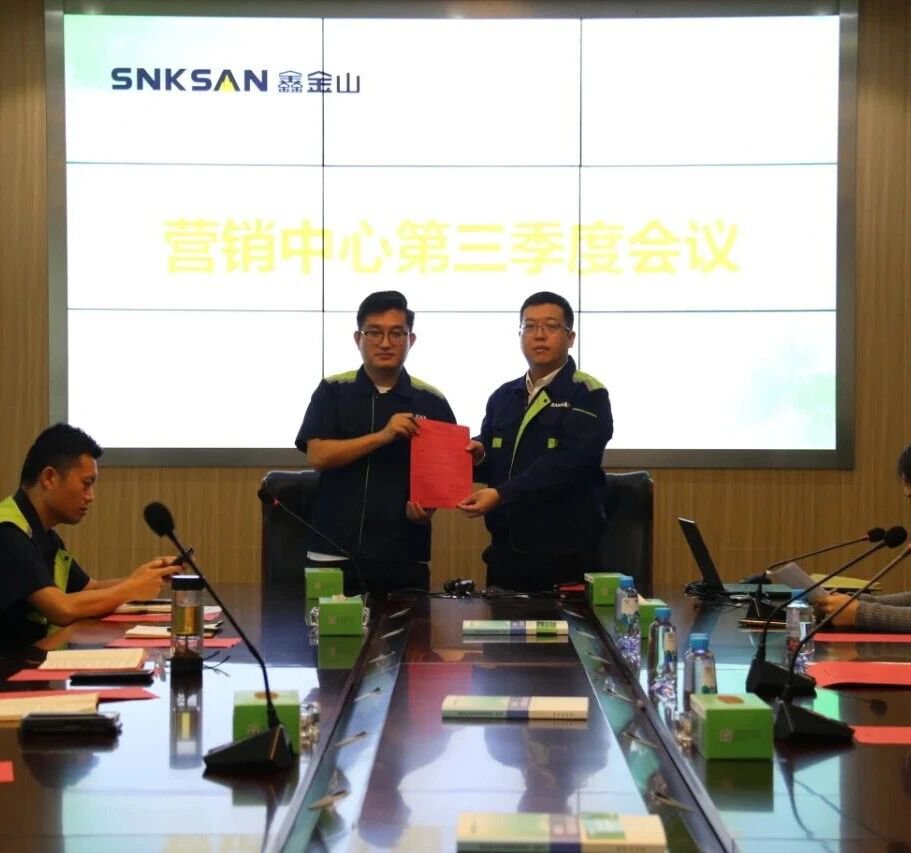 本次會(huì)議既是對(duì)第三季度營銷工作的系統(tǒng)復(fù)盤,更是對(duì)四季度沖刺的全面動(dòng)員。從復(fù)盤總結(jié)到表彰先進(jìn),從簽約立狀到分層部署,每一個(gè)環(huán)節(jié)都緊扣 “沖刺全年” 的核心目標(biāo),凝聚著鑫金山營銷團(tuán)隊(duì)的決心與信心。