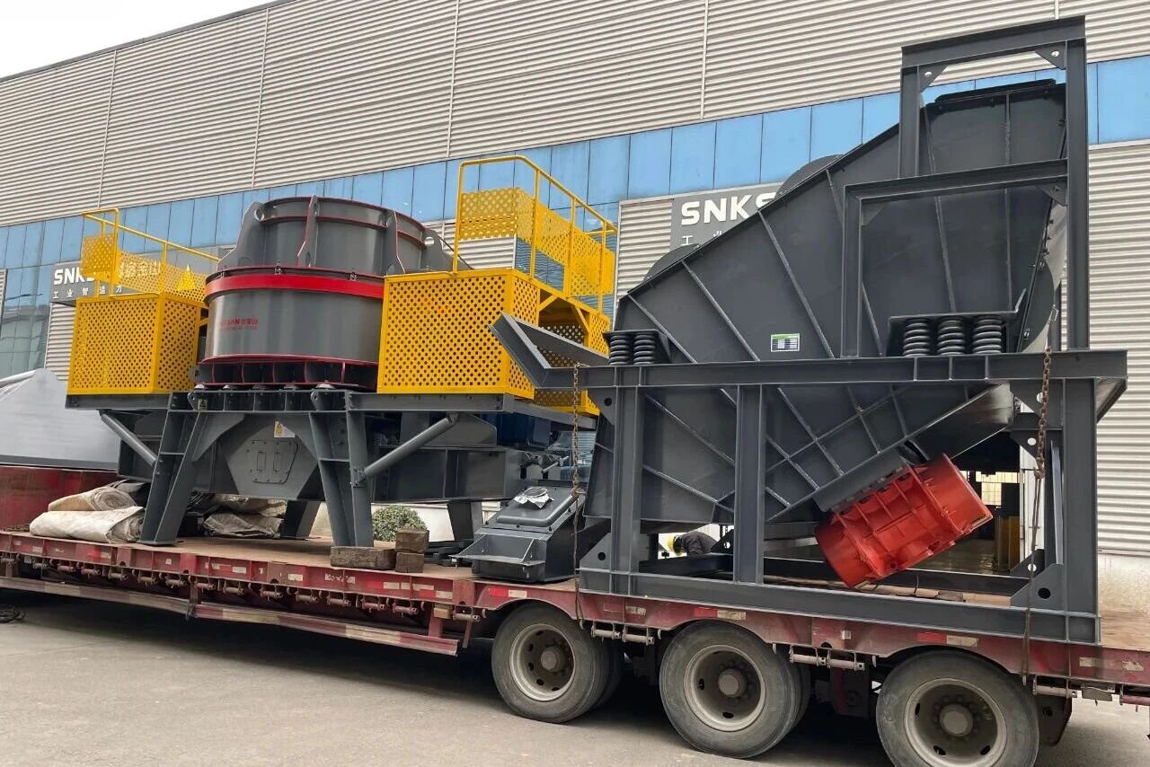 導讀:金秋時節,碩果盈枝,山東鑫金山智能裝備有限公司的生產基地內一片熱火朝天的繁忙景象。多臺套智能破碎、篩分、制砂成套裝備經過嚴格的出廠檢測,在專業物流團隊的精準調度下