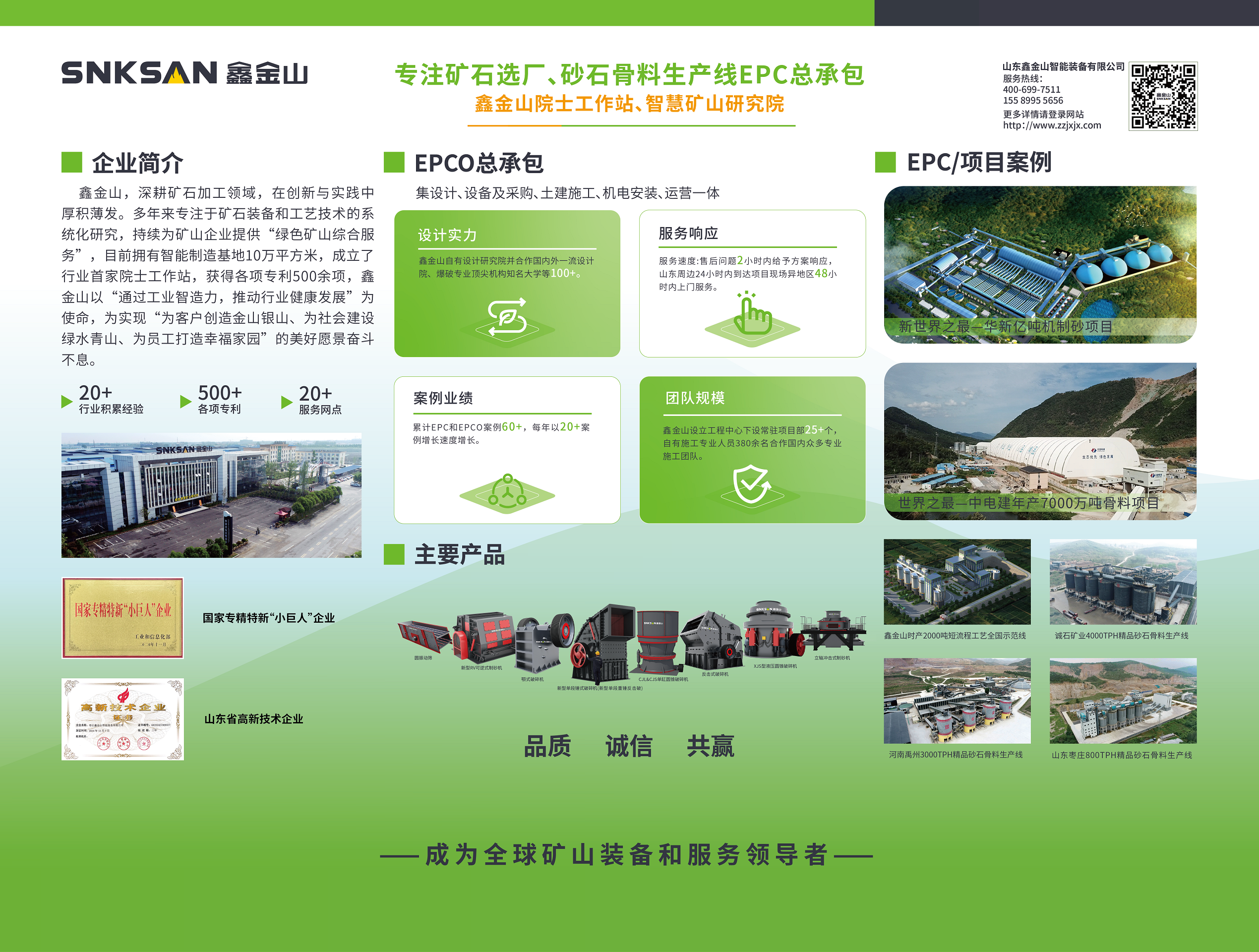 ? 全鏈條 EPC 總承包服務(wù),省心高效落地項目:從礦山項目規(guī)劃設(shè)計、核心設(shè)備采購、土建施工,到機(jī)電安裝調(diào)試、后期運營維護(hù),鑫金山提供一站式閉環(huán)服務(wù)。可根據(jù)不同礦山資源稟賦、產(chǎn)能需求,定制化打造高產(chǎn)能、低能耗、綠色環(huán)保的生產(chǎn)線,助力客戶降本增效、快速投產(chǎn)。