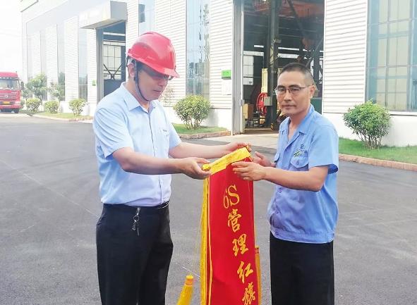 在半年總結6S表彰時,陳克峰所在的焊接工段第一名,授獎授旗。