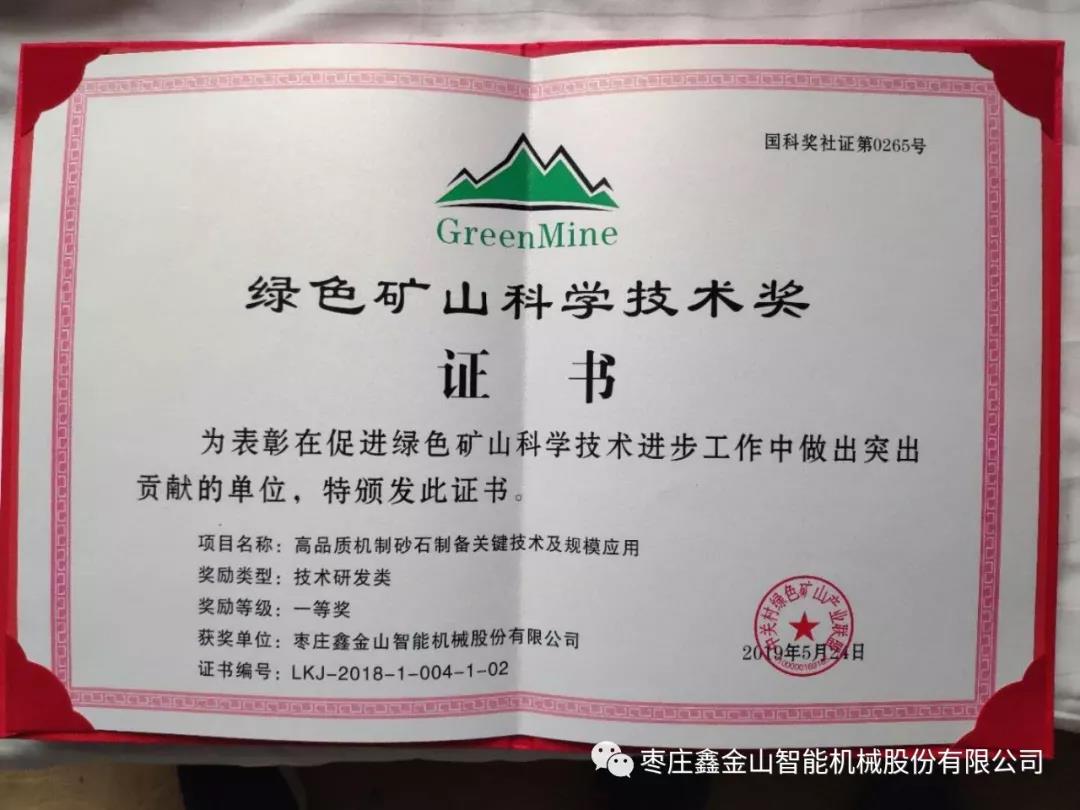 5月,榮獲“2018綠色礦山科學技術獎”一等獎!