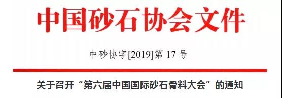 為加強各國砂石骨料行業的交流與合作,助力優化全球砂石資源配置,推動砂石骨料工業的轉型升級、綠色發展和高質量發展,發揮砂石骨料產業對全球經濟的支撐和拉動作用,共同打造全球砂石骨料工業的命運共同體,經中國砂石協會與多國相關協會和組織共同商議,定于2019年12月9~12日在江蘇無錫召開“第六屆中國國際砂石骨料大會”,同期舉辦“第四屆中國國際建筑固廢資源化利用大會”、“第五屆全國砂石骨料大賽”、“第八屆全國砂石行業書畫攝影展”、 “中國砂石協會第七屆十次常務理事會” 、“中國砂石協會2019年年會”等活動。