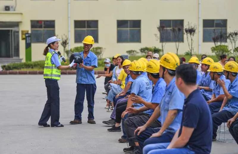 活動現場,民警們通過通俗易懂的語言,并結合近期發生的案例,自編自演了快板、小品、歌曲、情景劇等寓教于樂的節目,向園區工友們宣傳防范電信詐騙、傳授交通安全以及防火防盜等方面的知識,贏得了在場工友們的陣陣掌聲。