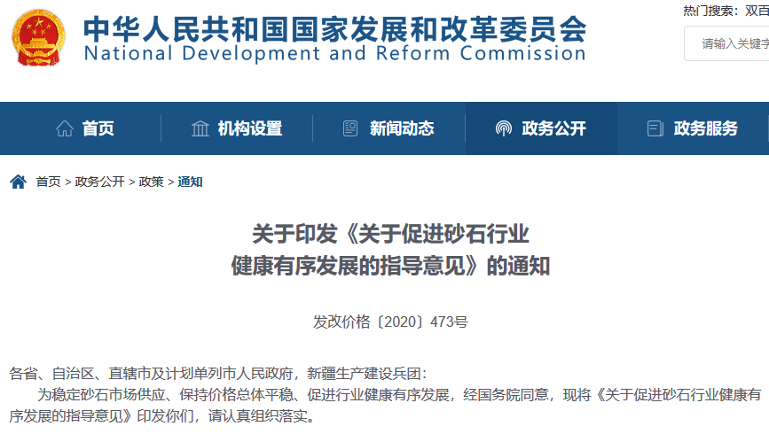國(guó)家發(fā)改委等十五部門和單位印發(fā)《關(guān)于促進(jìn)砂石行業(yè)健康有序發(fā)展的指導(dǎo)意見》,詳細(xì)回答了砂石行業(yè)該如何發(fā)展的關(guān)鍵問題。