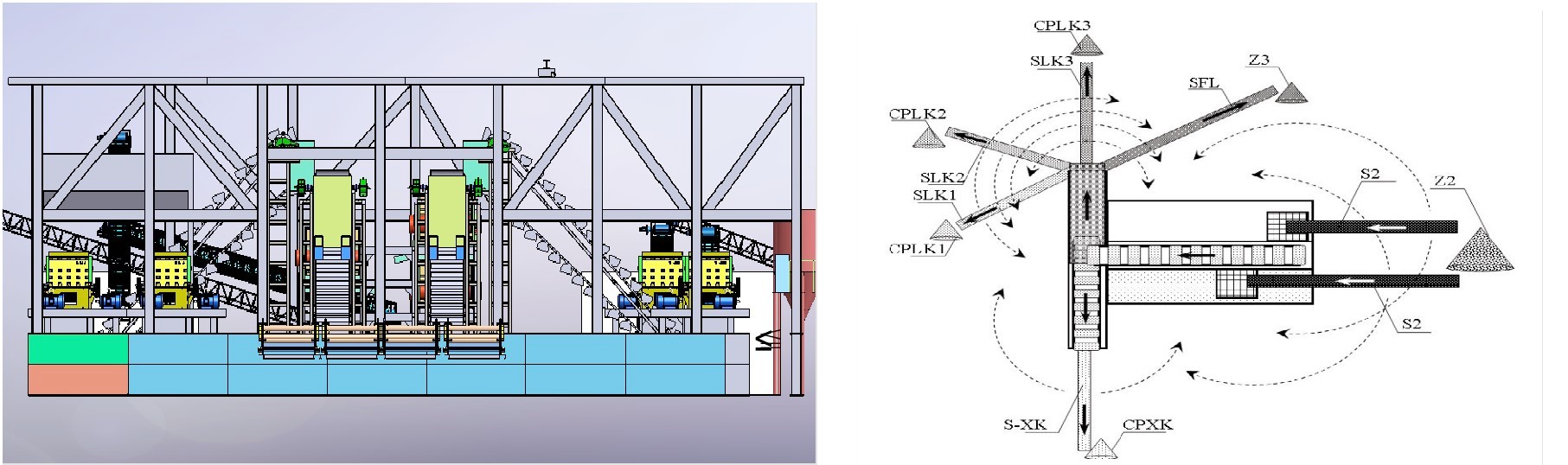 系統(tǒng)集成化的設(shè)計(jì),縮短工藝流程,減少了工序和設(shè)備, ≤1200mm的原料直接通過2段工藝可得到50%高品質(zhì)砂, 通過3段工藝就可100%純制砂。